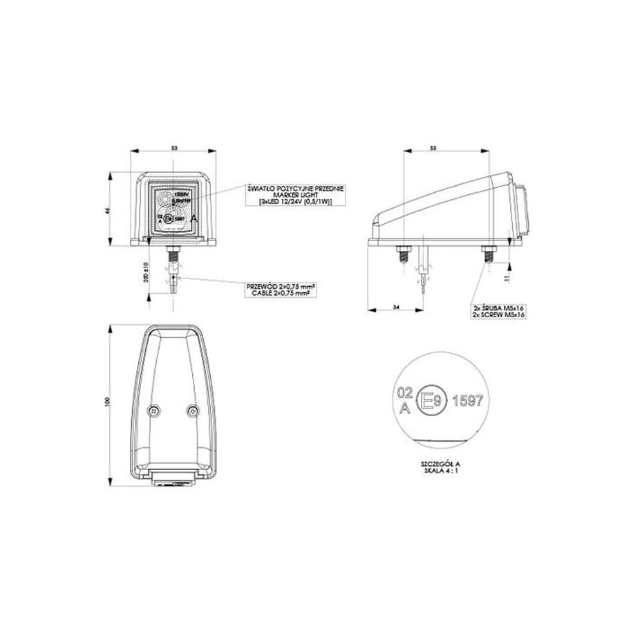 Fanalino a 3 led di posizione 12/24V colore bianco