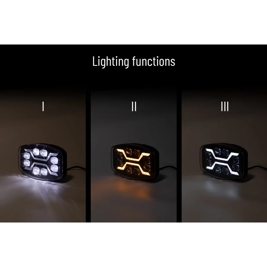 Fanale a led funzionante sia a 12V che 24V,resistente all’acqua e polvere certificato IP68,con un telaio in alluminio e staffa in acciaio inossidabile.