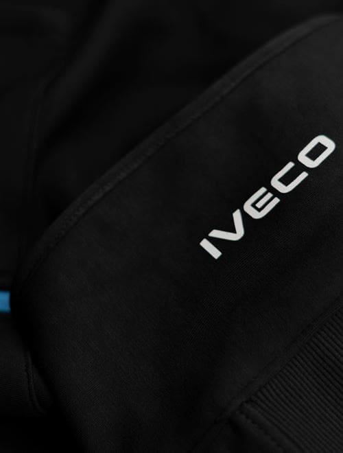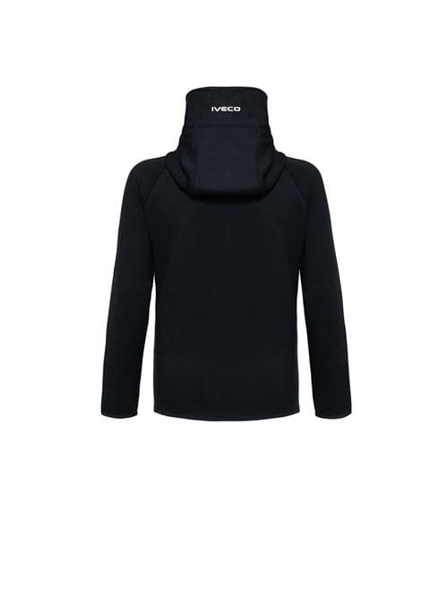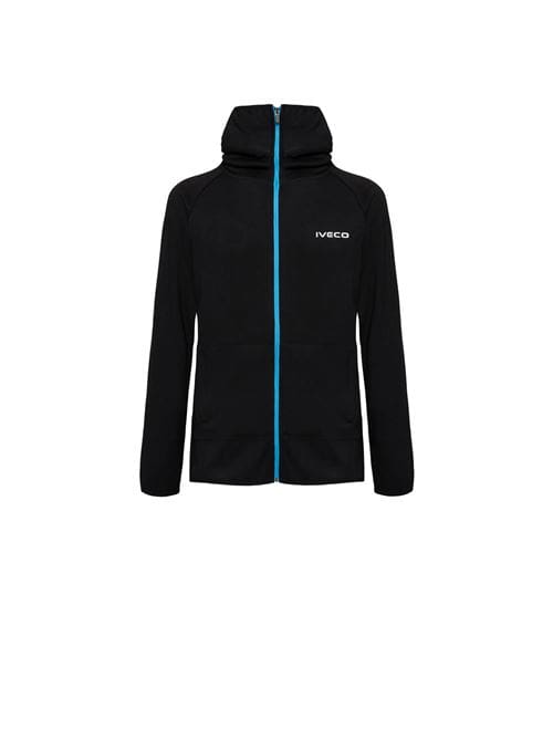 Felpa con cappuccio: logo sul cuore e sul cappuccio in stampa siliconata, apertura con cerniera in nylon RPET nylon (in Process Blue C).