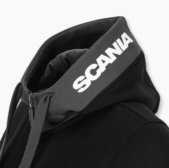 FELPA SCANIA NERA PESANTE CON ZIP E CAPPUCCIO DA UOMO