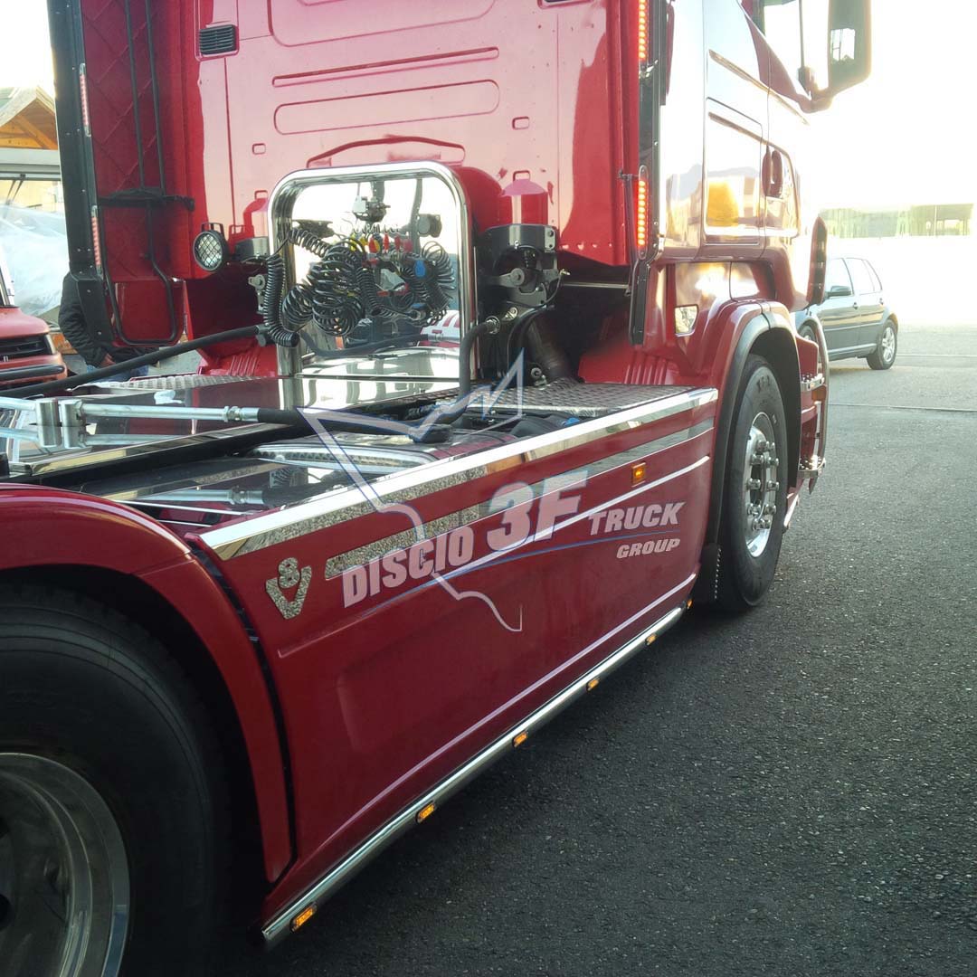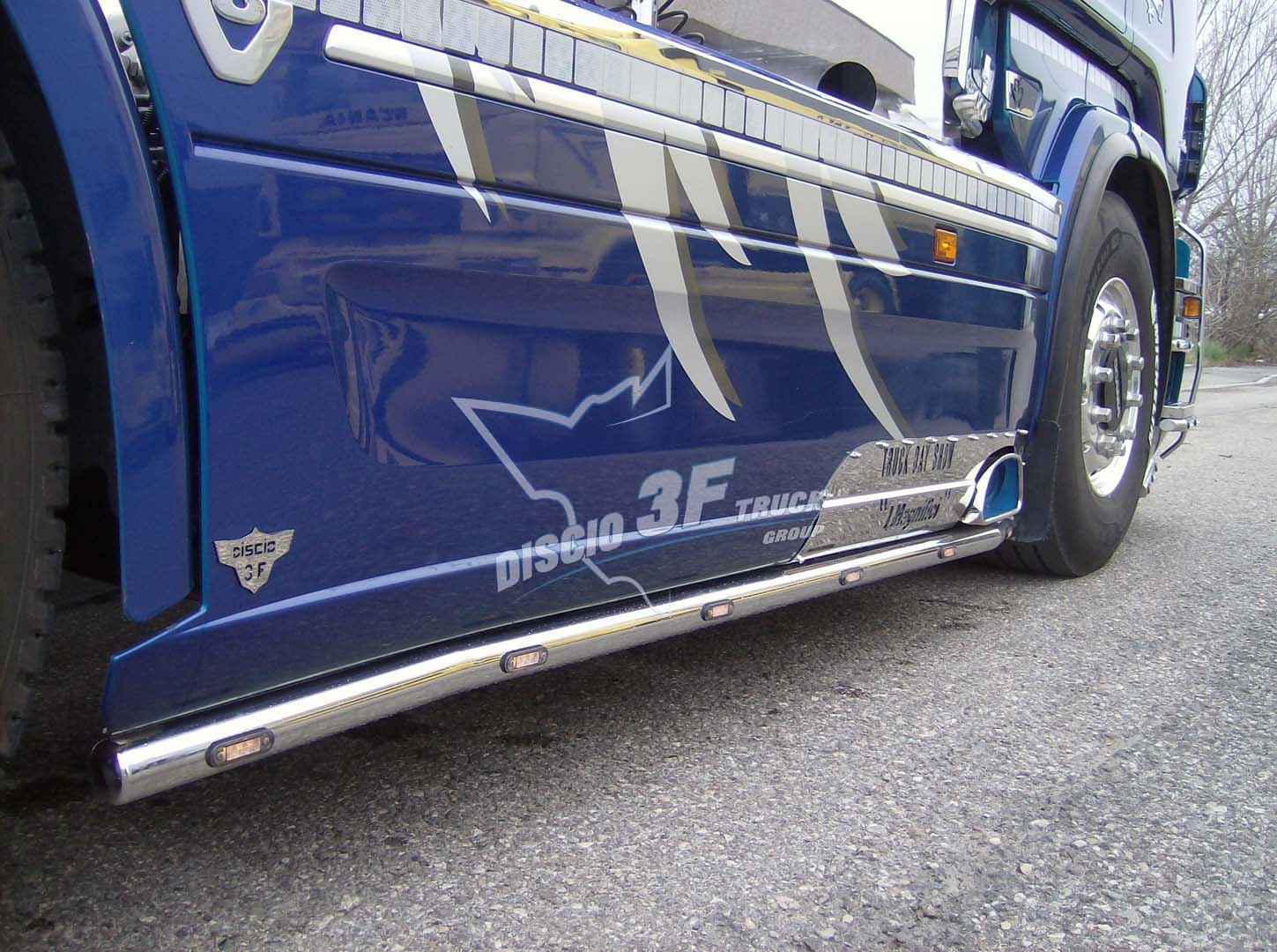 Profili minigonna realizzati in acciaio AISI 3004 progettati per salvaguardare la minigonna dalla consueta usura sui profili. Vengono dotate di biadesivo 3M per un fissaggio sicuro ed efficace, prima di spellicolare, pulire bene la zona interessata con alcol.