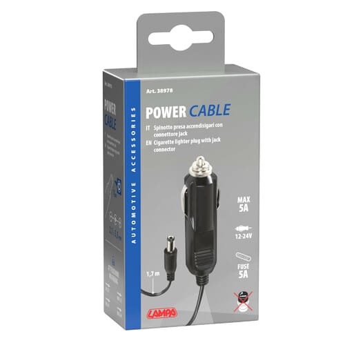 Consente di alimentare televisioni, amplificatori, navigatori, ecc., tramite la presa accendisigari del veicolo. Con fusibile di protezione, cavo da 170 cm