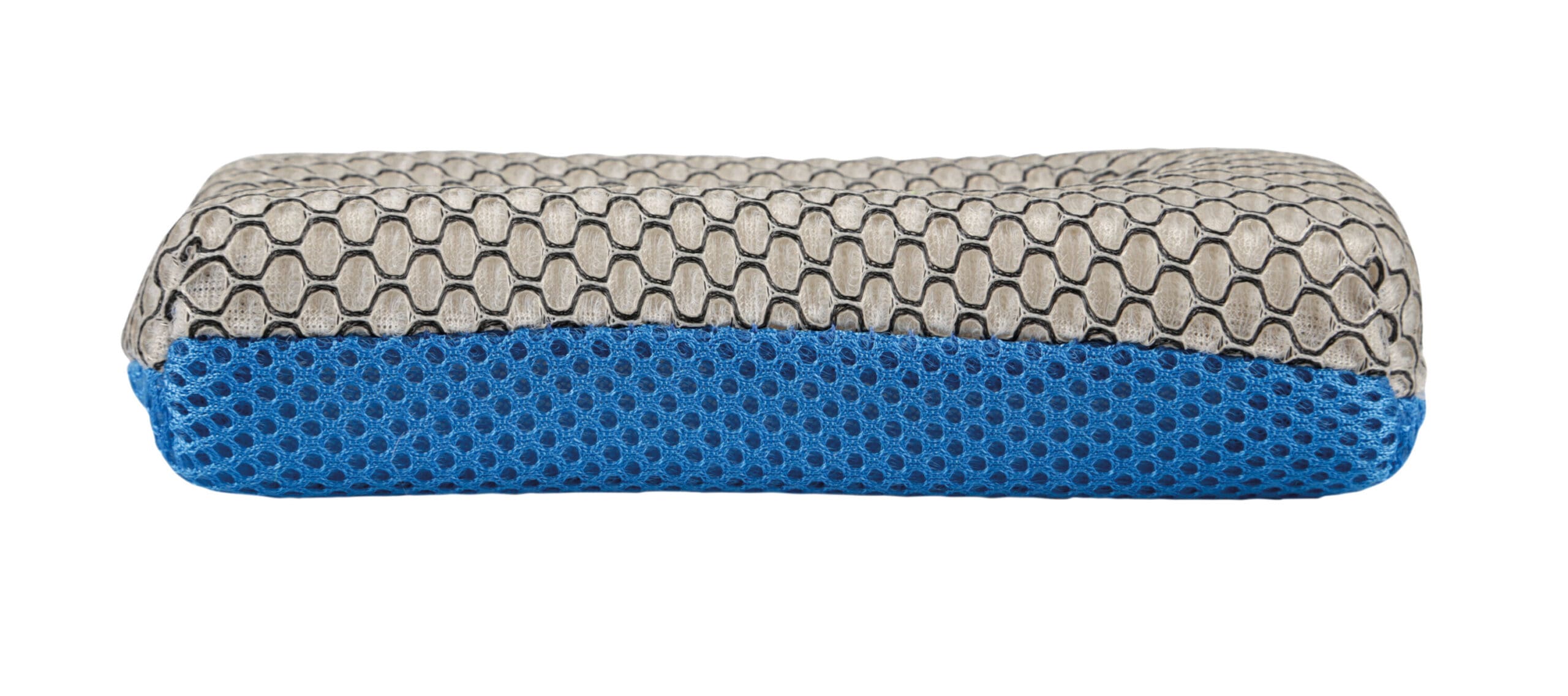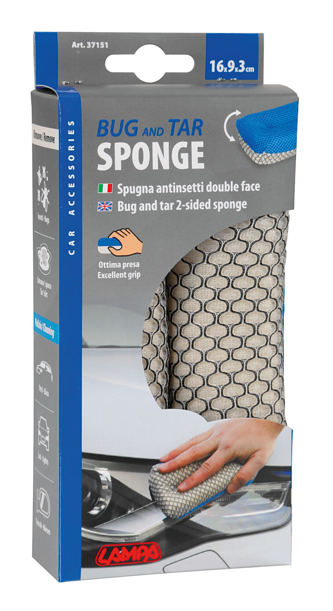 Compatta per un’ottima presa, super efficace, 2 lati abrasivi. Il lato grigio rimuove velocemnete insetti,resina, catrame, il lato blu vetri, specchi e fanali
