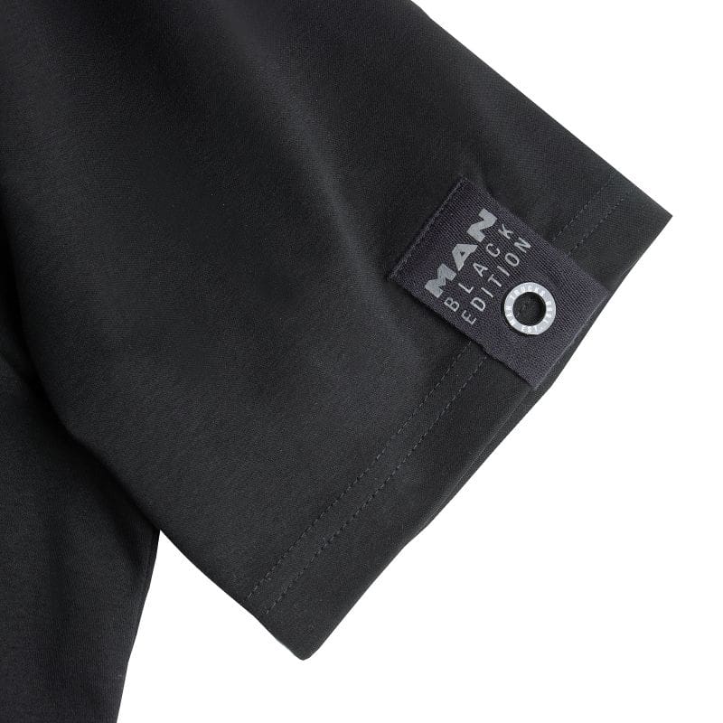 Materiale: 100% cotone biologico Colore: Nero Piccola etichetta MAN ad anello sulla cucitura laterale. Stampa del logo MAN 3D tono su tono con bordi colorati a contrasto sul davanti. Toppa MAN ad anello con occhiello con logo stampato sul bordo della manica sinistra. Stampa transfer MAN Black Tec Edition sulla parte interna del collo. Stampa con fiocco riflettente sul retro sotto il colletto.