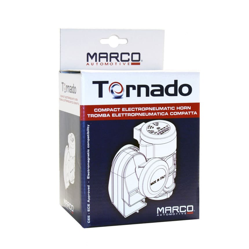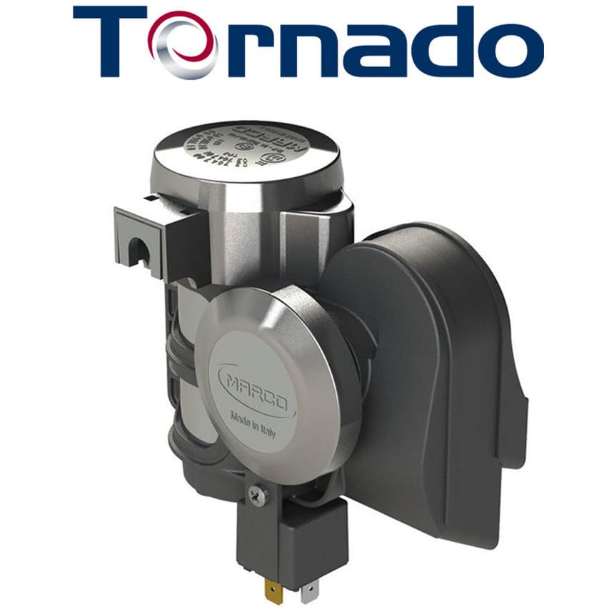 Tromba elettropneumatica compatta con suono bitonale molto potente. Il compressore integrato alla tromba consente l’immediata emissione del suono con la pressione del pulsante. Non è necessario alcun cablaggio del tubo dell’aria. Rapida installazione con unico punto di fissaggio. Dati tecnici: tensione 24V, Assorbimento 11A, Fusibile 15A, omologazione R.28 ECE/ONU, Hz 520/660, dB(A) 112